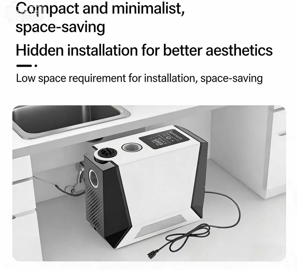 Kompakt stilfuldt design sparer installationsplads. Indløb og udløb med stor diameter på 1,5 tommer muliggør høj flowoutput og nem tilslutning. Hurtig selvinstallation tilgængelig eller hurtig professionel montering på stedet.