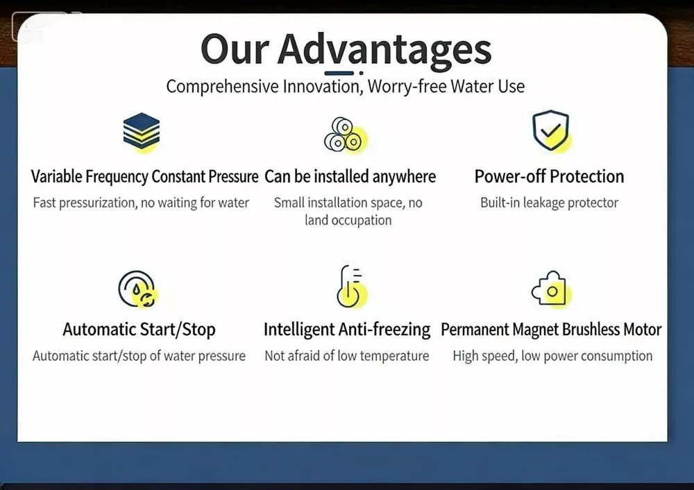 Den pålidelige ydeevne og smarte design af den store intelligente boosterpumpe gør den til en ideel løsning til boligforøgelse af vandtryk i forskellige bygninger.