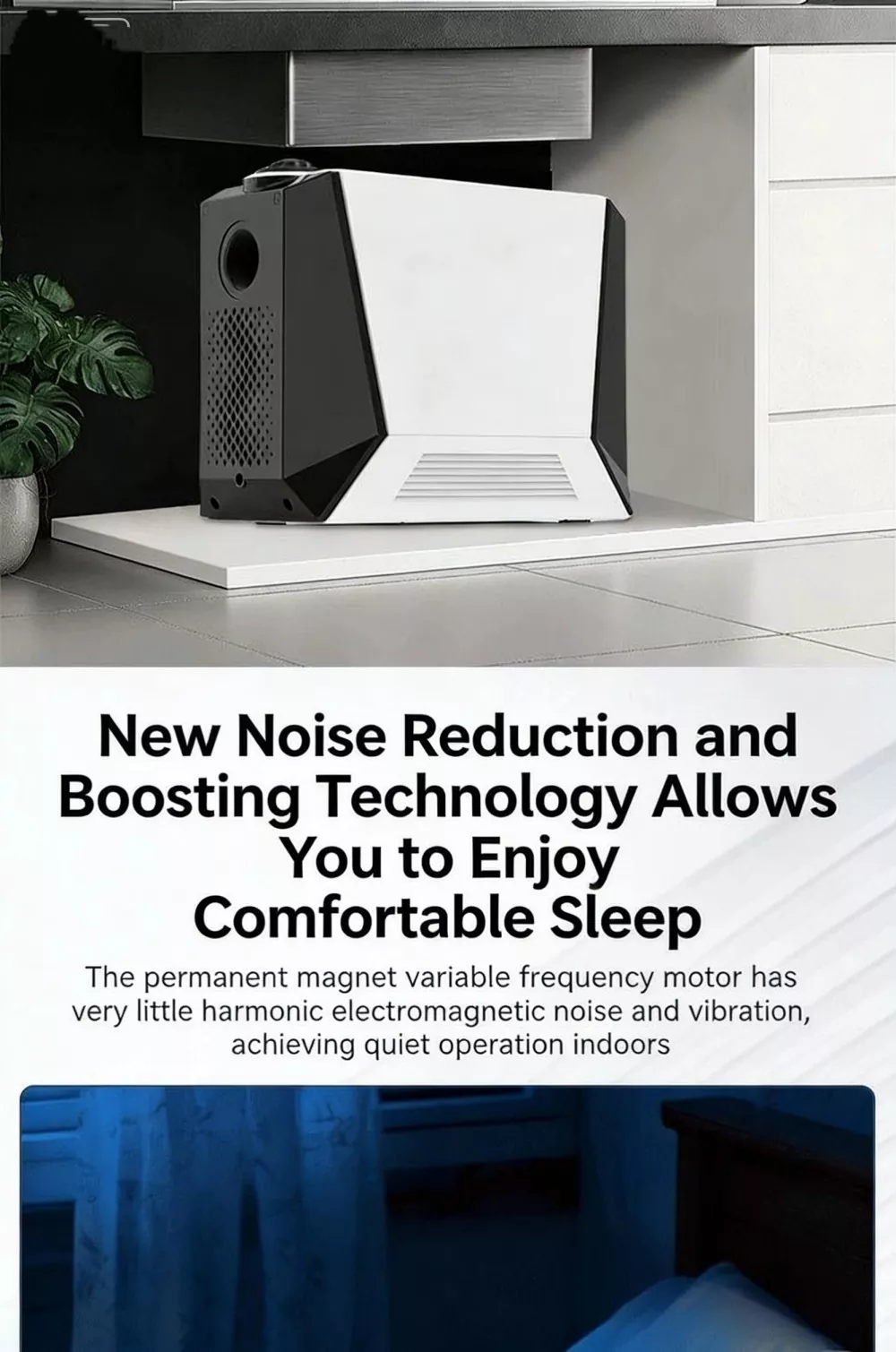 Vedtager højkvalitets børsteløs permanent magnet ren kobbermotor med høj energieffektivitet, lang levetid og stabil drift. Sammenlignet med traditionelle motorer er energieffektiviteten forbedret med over 30 %, hvilket reducerer energiforbruget og driftsomkostningerne.