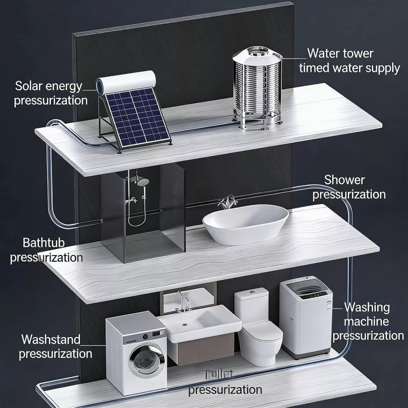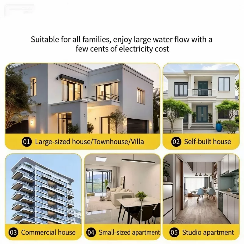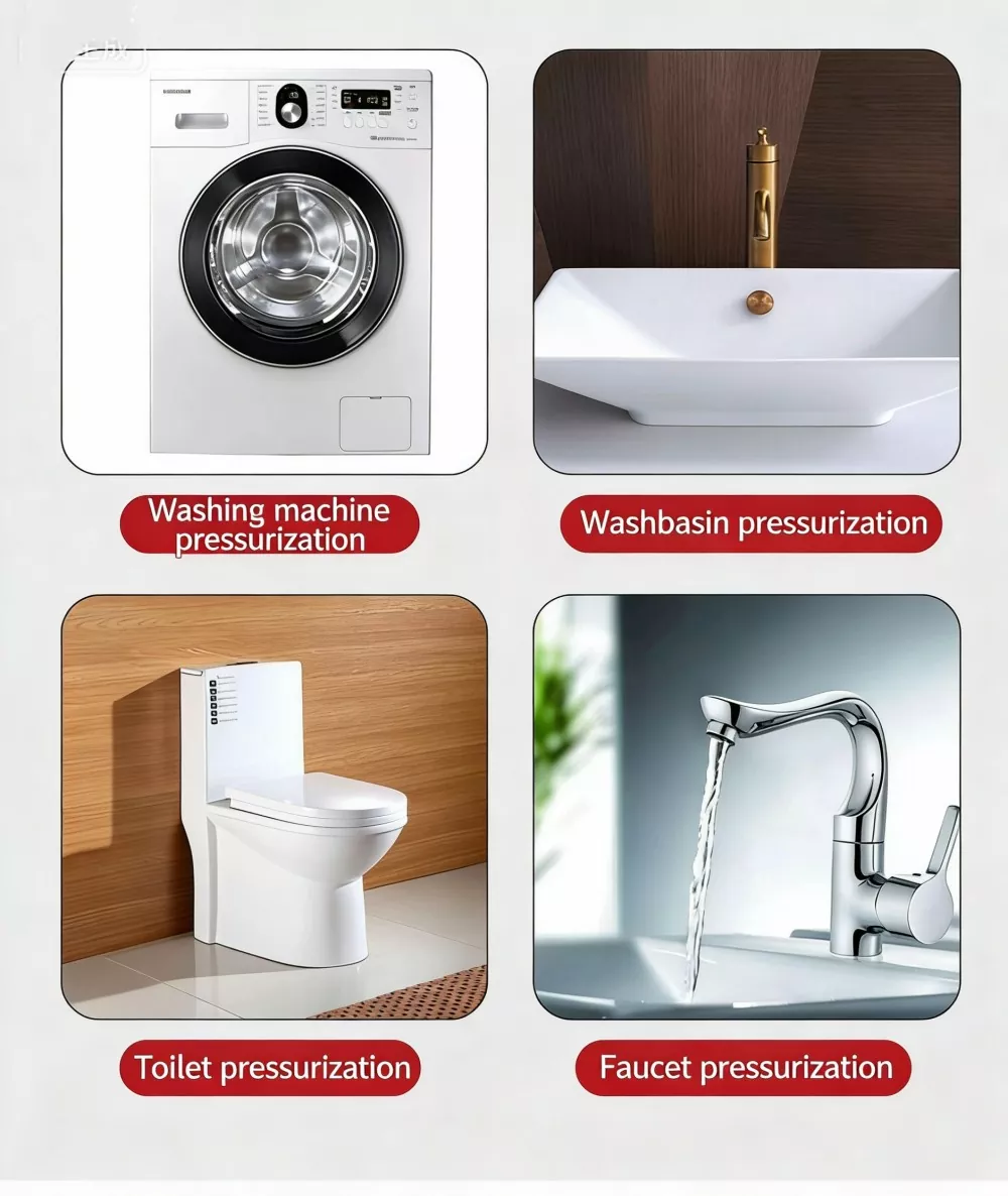 Store flade lejligheder: Fastgør lavt vandtryk på høje etager, sørg for stabil vandforsyning til brusere og køkkener.