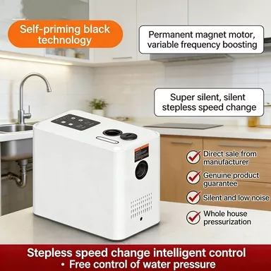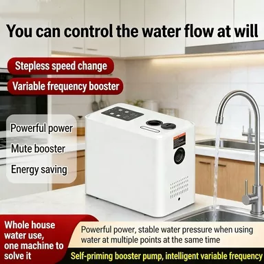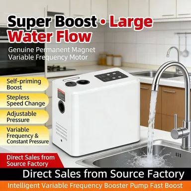 Permanent magnet variabel frekvens boosterpumpe kunne specialfremstilles, perfekt til lavt vandtryk derhjemme. Stærk selvsugning op til 8 meter, hurtig trykforøgelse, konstant vandgennemstrømning. Stille, energibesparende, nem installation. Ideel til husholdningsvandhaner, brusere og vandvarmere.